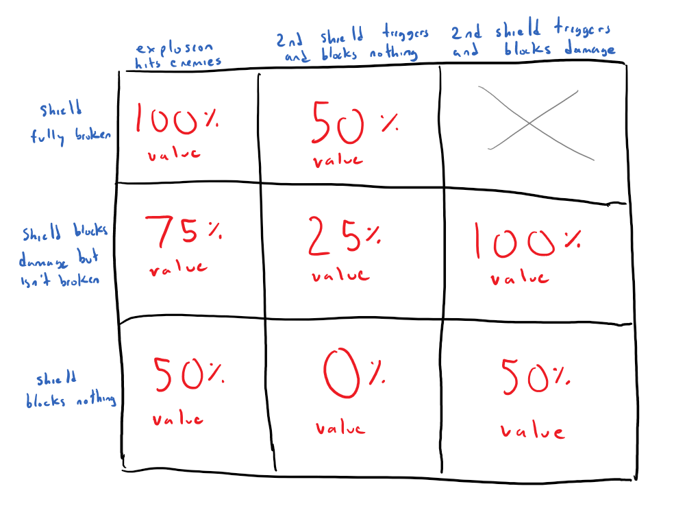Previously, there were 2 axis that make up Triggerseed usage: shield value and explosion value